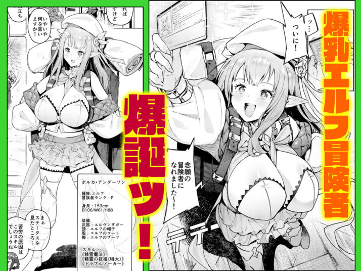 受難体質の爆乳新米エルフが、ガラの悪い冒険者に騙されうっかりヤラれまくる事態に…っ! ———————————————————————— ▼あらすじ エルフの里を離れ、念願の冒険者になったポルカ。 ギルド内でうっかりお尻を丸出しにしてしまっていた事で周囲の視線を集めてしまい、 早速、ガラの悪い冒険者に目をつけられるハメに。 案の定『俺らのアイテムを分けてやるから、宿に取りに来いよ』と声をかけられ ホイホイついていき、不意打ちで痺(しび)れ粉をかけられてしまった―! ベッドのある密室で、性欲強めな屈強な男二人と動けない受難体質の少女が一人… どうなるポルカちゃんっ…!(もちろん、めちゃくちゃハメられます) ———————————————————————— 作画:Croriin カラー表紙+モノクロ本文40ページ+おまけ ———————————————————————— ▼登場人物 ・ポルカ・アンダーソン 本シリーズの主人公。大きなおっぱいと大きな夢(ビッグドリーム)を持ち ついに、念願の冒険者デビューを果たしたエルフの女の子。 スキルのせいで昔から様々なトラブルに見舞われるものの、 真逆のスキルで奇跡的に助かる事になる、という《災厄》と《僥倖》を併せ持つ。 人を疑う事を知らず、いつでもポジティブに楽しく過ごしており、 なんだかんだでみなに可愛がられている。 ======================================================================== 【ステータス】 種族:エルフ 身長:153cm スリーサイズ:B106/W61/H88 冒険者ランク:F スキル:《精霊魔法》《精霊の祝福(特大)》《トラブルメーカー》 ========================================================================