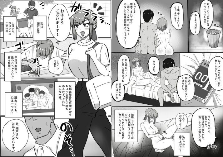 結婚12年目パート人妻(37)、大学生に寝取られる 「彼女できたの〜?」 「ごはんちゃんと食べてんの〜?」 「応援してるから、頑張りなさい!」 バイト先のいつも元気に励ましてくれる、ちょっとおせっかいなパートのおばさん。 旦那とも順風満帆だったようだが、出張が多く、夜はご無沙汰な様子・・・ 寂しく疼く30代のカラダに、大学生チンポの魔の手が忍び寄る・・・ 本編32ページ