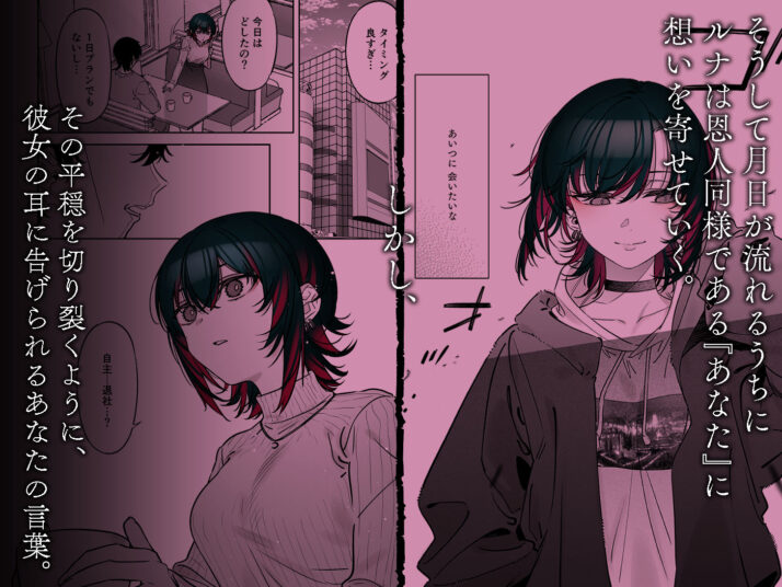 地雷な見た目をしている女の子、月(ルナ)。 ひと目見ただけではわからない、彼女の背景。 それを紐解いていくうちに親密な関係となる彼女とあなた。 あなたの温かな心に触れ、ルナの中ではただの客ではなくそれ以上の想いがあった。 そんな中、彼女といるところをSNSに上げられてしまう。 もうこの関係をやめようと切り出すあなたにルナは――… 「だったら…付き合ってよ。あたしと」 「それなら誰も文句言えないよね」 ルナの想像もしてなかった言葉にあなたは…。 ——————————————————————————– 過去作『めちゃくちゃ地雷っぽいけど根は優しそうな子』の続編になります。 SNSで連載中の『めちゃくちゃ地雷っぽいけど根は優しそうな子』 6〜10をまとめ、 続きの描き下ろし漫画30ページを含めた作品となっております。 (X旧twitter@miku7zu7) 見た目は地雷っぽいダウナー系女の子の売りを買ってみたらかなりえっちに誘われるお話です。 モノクロ漫画全40P(SNS掲載分10P+描き下ろし30P)※微カラー ファイル形式 PNG DL版は特典として声優『猫乃緒みみ』様によるボイスドラマ(バイノーラル)が付いてきます!