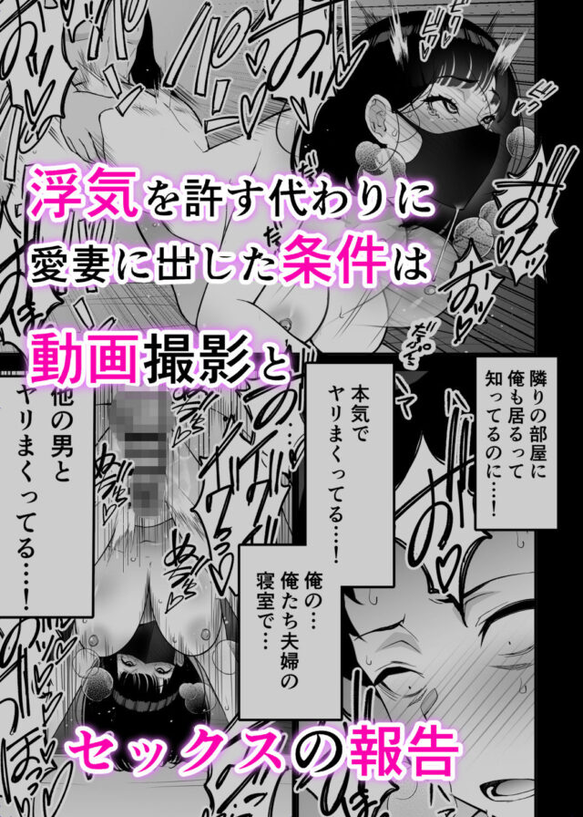 「寝取られ」好きが「寝取られ」好きのために作った、ド直球「寝取られマンガ」堂々完結! 大ボリュームおまけ付き・総梱数、144P!! (モノクロ本編 78P おまけ:パッケージ別Ver 6枚、過去作「パパ活NTRお母さん」試し読み版60P ) ————————————————————————————————- <<あらすじ>> 愛する妻の浮気を知った事を切っ掛けに、自分以外の男に妻が抱かれて興奮する「寝取られ」性癖に目覚めてしまった夫・たかし。 浮気を容認する代わりに、情事の録画と事後報告する事を妻・めぐみに提案する。 夫への罪悪感と得も言われぬ興奮から、夫の提案を受け入れるめぐみ。 歪んだ性に溺れ、2人はどんどん深みにハマって行く…。 ———————————————————————————————– 【「寝取られ」好きな方に是非、見て欲しい】 ・好きな子が自分以外の男とセックスしてるなんて、むしろゾクゾクする。 ・失恋の思い出の心の痛みと重なって、逆に興奮する。 そんな「寝取られ」好きの皆様 夫の為に淫欲に溺れる人妻あゆみちゃんの可愛い痴態と、 愛妻を他人棒に犯●れて興奮してしまう主人公たかし君の心痛を、是非ご堪能ください! ———————————————————————————————– 【NTRが本当に好きなかた以外は購入しないでください!】 ※こちらは「NTR漫画」です。「寝取られ作品」が好きではない方は 不快に思われる可能性があるので、購入はおすすめしません。 ———————————————————————————————– 【収録内容】 ・タイトル表紙 1P ・タイトル表紙・別ver 1P ・コミック本編 70P ・ヒロイン性癖設定 2P ・ヒロイン直近性交イラスト 1P ・あとがき 1P ・奥付け 1P ・裏表紙 1P (本編合計:78) 〜オマケ:1〜 ・高画質版パッケージイラスト x1 ・パッケージ別Ver x5 (計6枚) 〜オマケ:2〜 ・「パパ活NTRお母さん」お試し読みver (冒頭からP60まで同梱) (計60枚) ◆ 総梱枚数:144 ◆ ———————————————————————————————– ◆性器修正 黒ヌリ ◆JPEG版&PDF版、2種同梱 ================================================================================================ ※レビュー募集中 今作は、当サークル初のオリジナル創作DL同人コミックになります。 気に入った点、良かった所、ご希望など、レビューを頂ければ 次回以降の参考にさせていただきます。 是非、ご感想よろしくお願いします! 作者のやる気アップと次回作品のクオリティアップにも繋がりますので ファン登録の方も、どうぞよろしくお願いします!!!